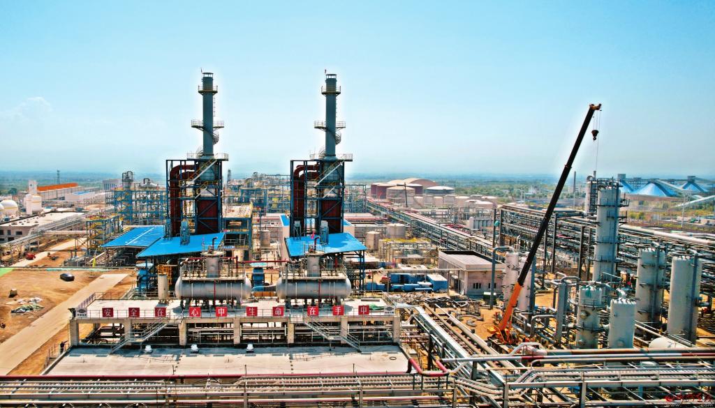 同德科創(chuàng)PBAT新材料產(chǎn)業(yè)鏈一體化項目建設(shè)現(xiàn)場。 本報記者 張存良攝