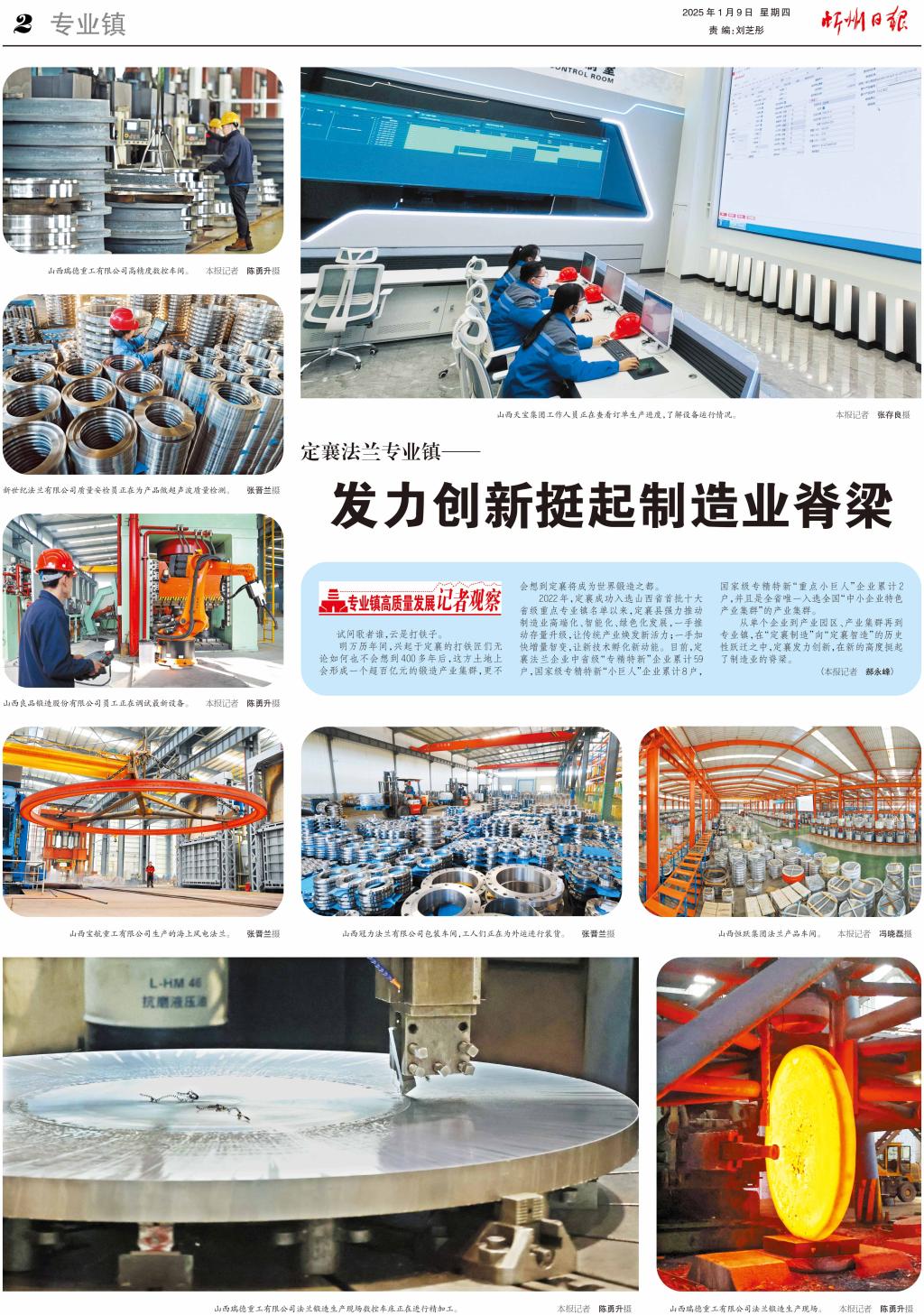 浪涌四方,潮起定襄。定襄,這個(gè)以法蘭鍛造聞名全國(guó)的晉北工業(yè)小城自2022年成功入選山西省首批十大省級(jí)重點(diǎn)專業(yè)鎮(zhèn)以來,就開始了在法蘭產(chǎn)業(yè)賽道上的強(qiáng)勢(shì)進(jìn)階。去年以來,定襄縣以黨的二十屆三中全會(huì)精神為指引,全面深化改革,用“高”“智”“綠”“服”的理念和行動(dòng),進(jìn)一步推進(jìn)法蘭產(chǎn)業(yè)質(zhì)量變革、效率變革、動(dòng)力變革。
