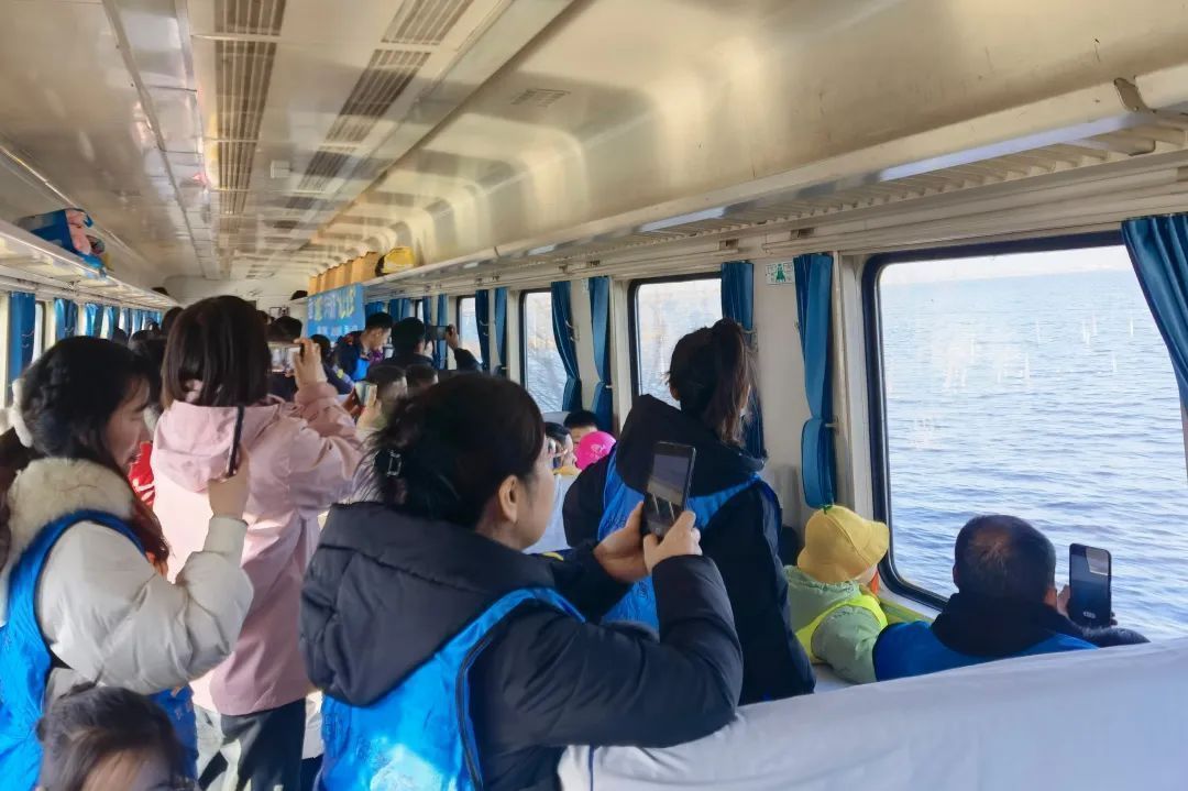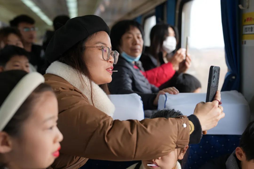 列車駛出運(yùn)城站,工作人員開始為旅客熱心介紹打卡拍照的最佳地點和周邊的名勝古跡,并且精心準(zhǔn)備了小道具,方便大家打卡拍照。