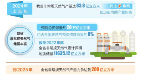 我省非常規(guī)天然氣儲量豐富,預(yù)測總資源量約20萬億立方米,約占全國天然氣預(yù)測資源總量的8%;截至2022年底,全省非常規(guī)天然氣累計(jì)探明地質(zhì)儲量11635.12億立方米。據(jù)了解,全省目前進(jìn)行工業(yè)規(guī)模開采的非常規(guī)天然氣主要包括煤層氣、頁巖氣、致密砂巖氣,已經(jīng)形成較為完整的產(chǎn)業(yè)鏈條,正向著把資源優(yōu)勢更好地轉(zhuǎn)化為產(chǎn)業(yè)優(yōu)勢的方向努力發(fā)展。2023年發(fā)布的《山西省非常規(guī)天然氣行業(yè)碳達(dá)峰實(shí)施方案》提出,要加快開展非常規(guī)天然氣資源勘探,大力推進(jìn)非常規(guī)天然氣開發(fā),到2025年全省非常規(guī)天然氣產(chǎn)量力爭達(dá)到200億立方米。