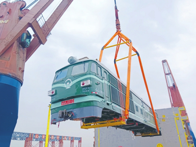 風(fēng)起渤海,向海圖強(qiáng)。日前,在太重天津碼頭4#泊位外貿(mào)輪“索菲亞”作業(yè)現(xiàn)場(chǎng),4臺(tái)東風(fēng)4B內(nèi)燃機(jī)車體順利完成裝船作業(yè),標(biāo)志著太重濱海碼頭服務(wù)添新、貨類“上新”。