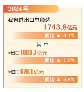 從貿(mào)易主體看,2024年,全省活躍企業(yè)持續(xù)增加,有進(jìn)出口實績的企業(yè)達(dá)2084家,同比增加3.7%,凈增加75家。