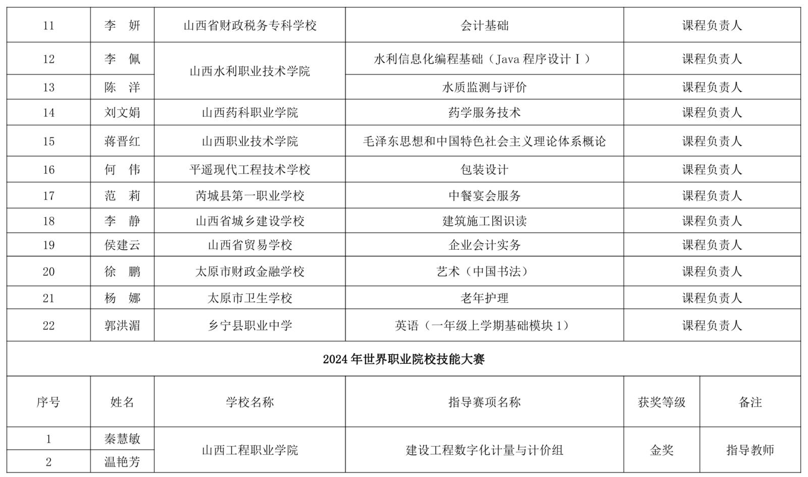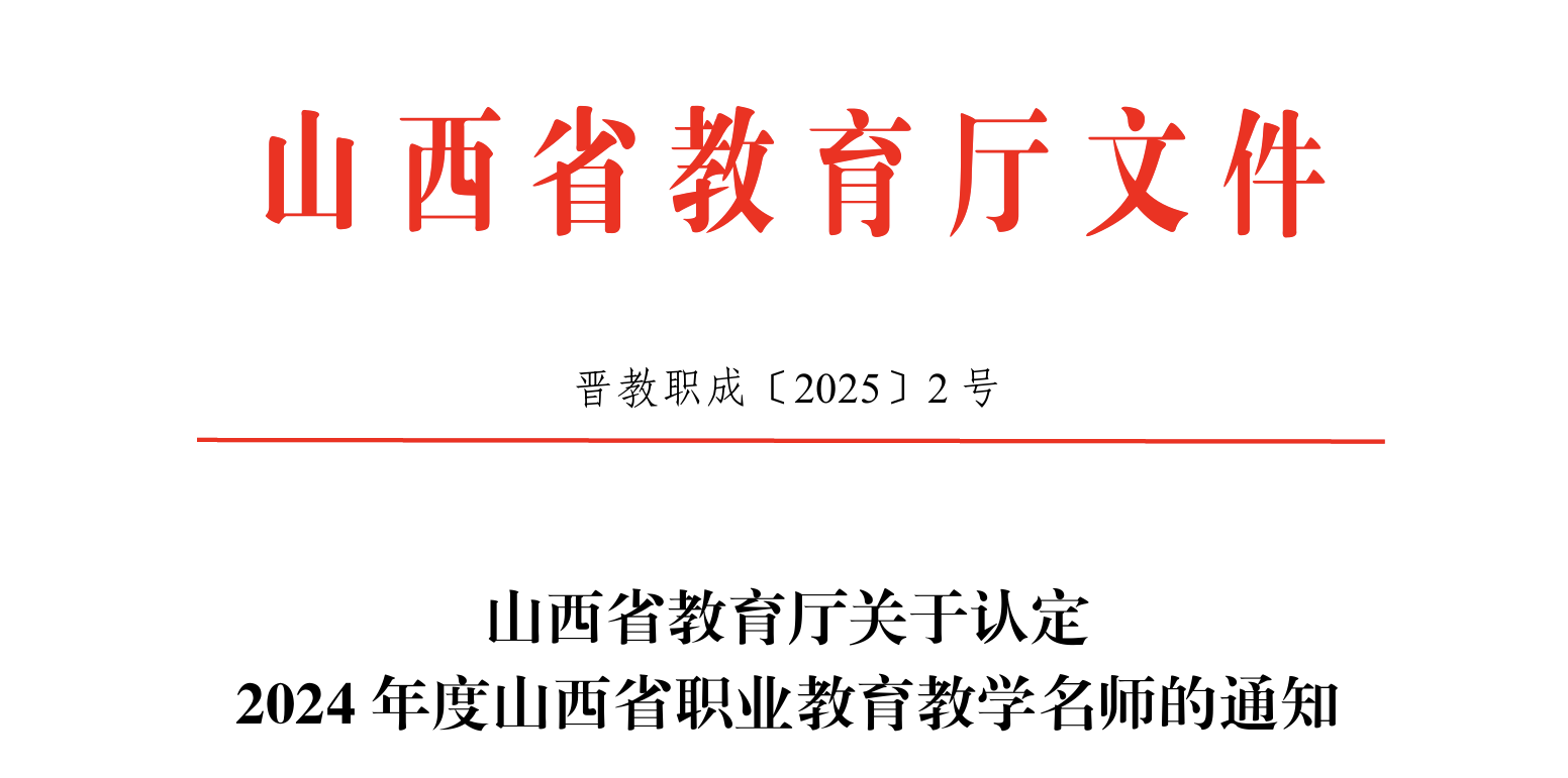 山西日報客戶端綜合報道 近日,山西省教育廳印發(fā)《關(guān)于認(rèn)定2024年度山西省職業(yè)教育教學(xué)名師的通知》(以下簡稱《通知》),將2024年獲得國家級在線精品課程負(fù)責(zé)人、世界職業(yè)院校技能大賽金獎指導(dǎo)教師、全國模范教師、全國優(yōu)秀教師共48人認(rèn)定為2024年度山西省職業(yè)教育教學(xué)名師。