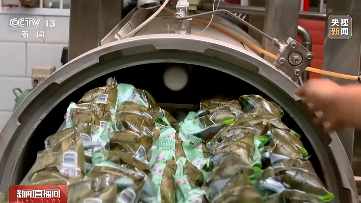 劉軍芳去大企業(yè)學(xué)習(xí),建起了一個(gè)集蒸煮、滅菌、真空包裝于一體的加工坊。針對(duì)市場(chǎng)的新特點(diǎn),他與非遺傳承人探討,對(duì)傳統(tǒng)制作工藝和口味進(jìn)行改良,用三片葉子包出了新型粽子,在保留“吉祥團(tuán)圓、五谷豐登”美好寓意的同時(shí),也更加符合現(xiàn)代消費(fèi)者的需求。