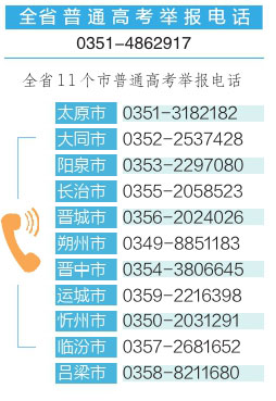 山西日報訊(記者李林霞)為維護(hù)高考公平公正,省招考中心日前公布了今年全省普通高考舉報電話。