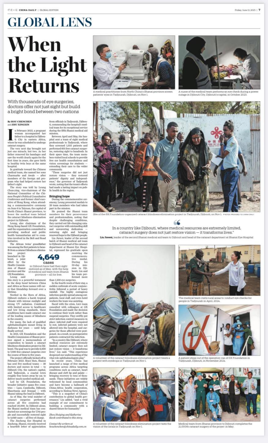 《中國日?qǐng)?bào)國際版》6月13日第7版Global Lens欄目截圖數(shù)千例眼科手術(shù)背后,山西援外醫(yī)療隊(duì)醫(yī)生們不僅為非洲患者重賦光明,更在兩國間架起友誼之橋。