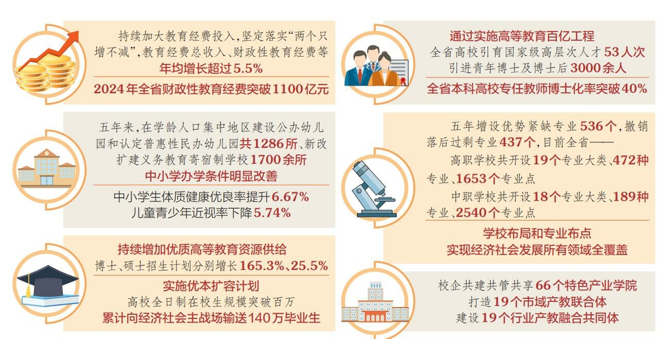 教育是國(guó)之大計(jì)、黨之大計(jì),也是每個(gè)家庭的心頭事。“十四五”以來,在省委、省政府堅(jiān)強(qiáng)領(lǐng)導(dǎo)下,全省教育系統(tǒng)深入貫徹落實(shí)習(xí)近平總書記關(guān)于教育的重要論述,全面貫徹黨的教育方針,堅(jiān)定落實(shí)教育優(yōu)先發(fā)展戰(zhàn)略,有力推動(dòng)“十四五”規(guī)劃各項(xiàng)指標(biāo)任務(wù)全面完成,為“十五五”時(shí)期加快建設(shè)教育強(qiáng)省奠定了堅(jiān)實(shí)基礎(chǔ)。