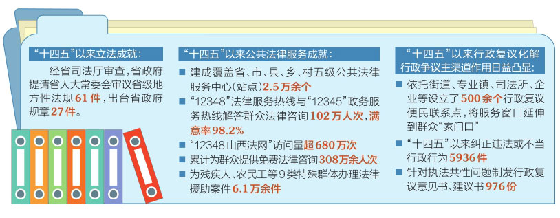 “十四五”以來,全省司法行政系統(tǒng)堅持和發(fā)展新時代“楓橋經(jīng)驗”,以法治力量維護(hù)社會和諧穩(wěn)定,助力建設(shè)更高水平的平安山西、法治山西。