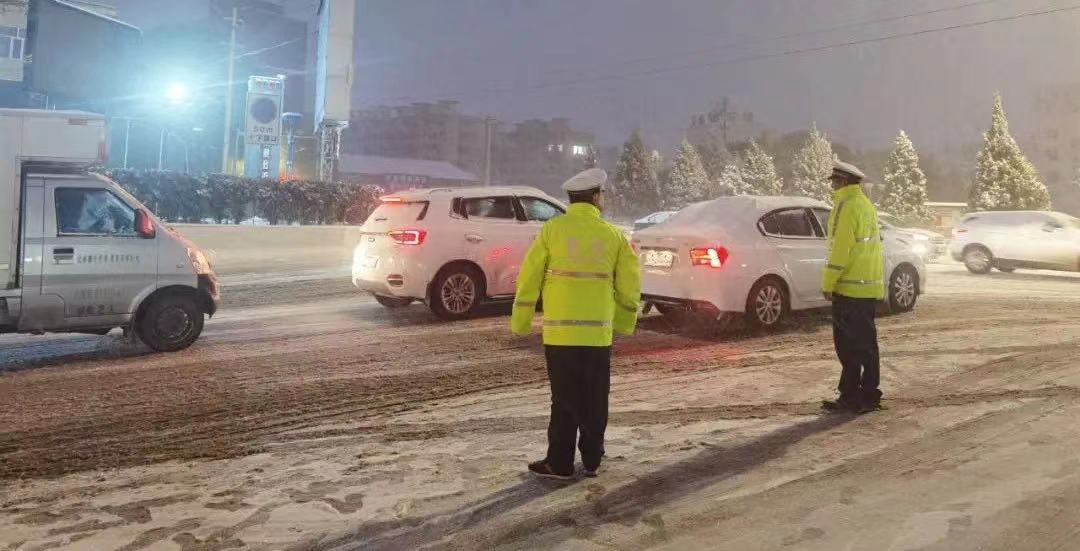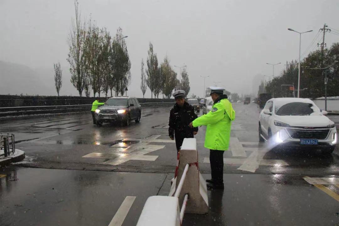 工作中,交警大隊迅速啟動惡劣天氣應(yīng)急預(yù)案,民警輔警全員上崗,在轄區(qū)各主要路段、路口采取定點執(zhí)勤與流動巡邏相結(jié)合的方式,加大路面管控和指揮疏導(dǎo)力度,防止高峰時段因雪天路滑造成擁堵現(xiàn)象。