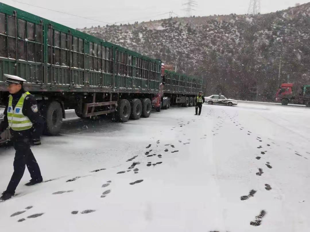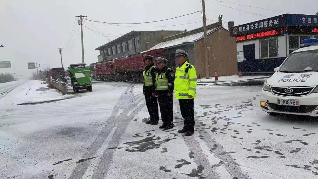 11月6日,轄區(qū)出現(xiàn)降雪天氣,部分路面積雪結(jié)冰。為了預(yù)防和減少道路交通事故,偏關(guān)縣公安局交警大隊在重點濕滑路段加派警力,對行駛車輛進(jìn)行交通疏導(dǎo)。