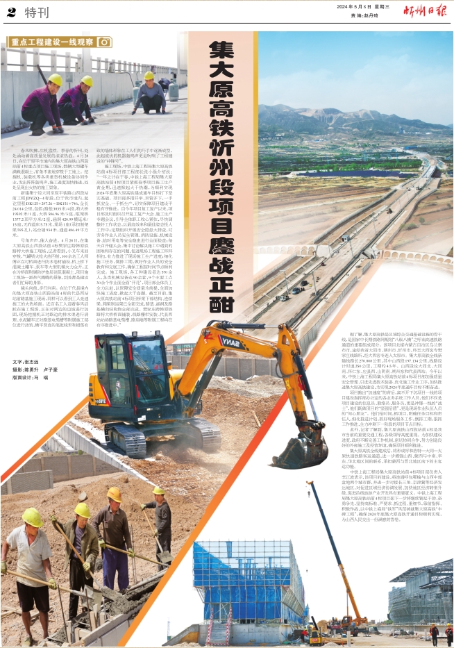 春風吹拂,生機盎然。季春的忻州,處處涌動著高質(zhì)量發(fā)展的滾滾熱浪。4月28日,在位于原平市境內(nèi)的集大原高鐵山西段站前4標重點項目施工現(xiàn)場,數(shù)輛大型罐車滿載混凝土,有條不紊地穿梭于工地上。挖掘機、裝載機等各類重型機械設(shè)備協(xié)同作業(yè),發(fā)出陣陣轟鳴聲,施工進度加快推進,處處呈現(xiàn)出火熱的施工景象。