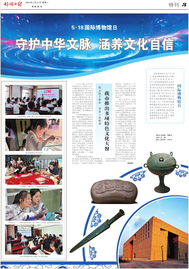 今年國際博物館日的主題為“博物館致力于教育和研究”。旨在強調(diào)博物館在提供全面教育體驗、培育社會主義核心價值觀和弘揚中華優(yōu)秀傳統(tǒng)文化等方面的重要作用。