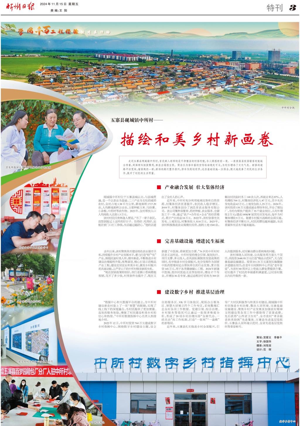 近年來(lái),五寨縣扎實(shí)推進(jìn)鄉(xiāng)村全面振興,引導(dǎo)廣大村民積極參與和美鄉(xiāng)村建設(shè),硯城鎮(zhèn)中所村在推進(jìn)鄉(xiāng)村治理、整治人居環(huán)境、完善基礎(chǔ)設(shè)施建設(shè)、聚焦鄉(xiāng)村產(chǎn)業(yè)發(fā)展及加強(qiáng)農(nóng)村精神文明建設(shè)等各項(xiàng)工作中都取得了顯著成績(jī),先后獲得“山西省衛(wèi)生村”、全市農(nóng)村“孝親敬老扶貧助困”先進(jìn)集體、五寨縣先進(jìn)基層黨組織、五寨縣人居環(huán)境示范村、全省先進(jìn)基層黨組織等榮譽(yù)稱號(hào)。