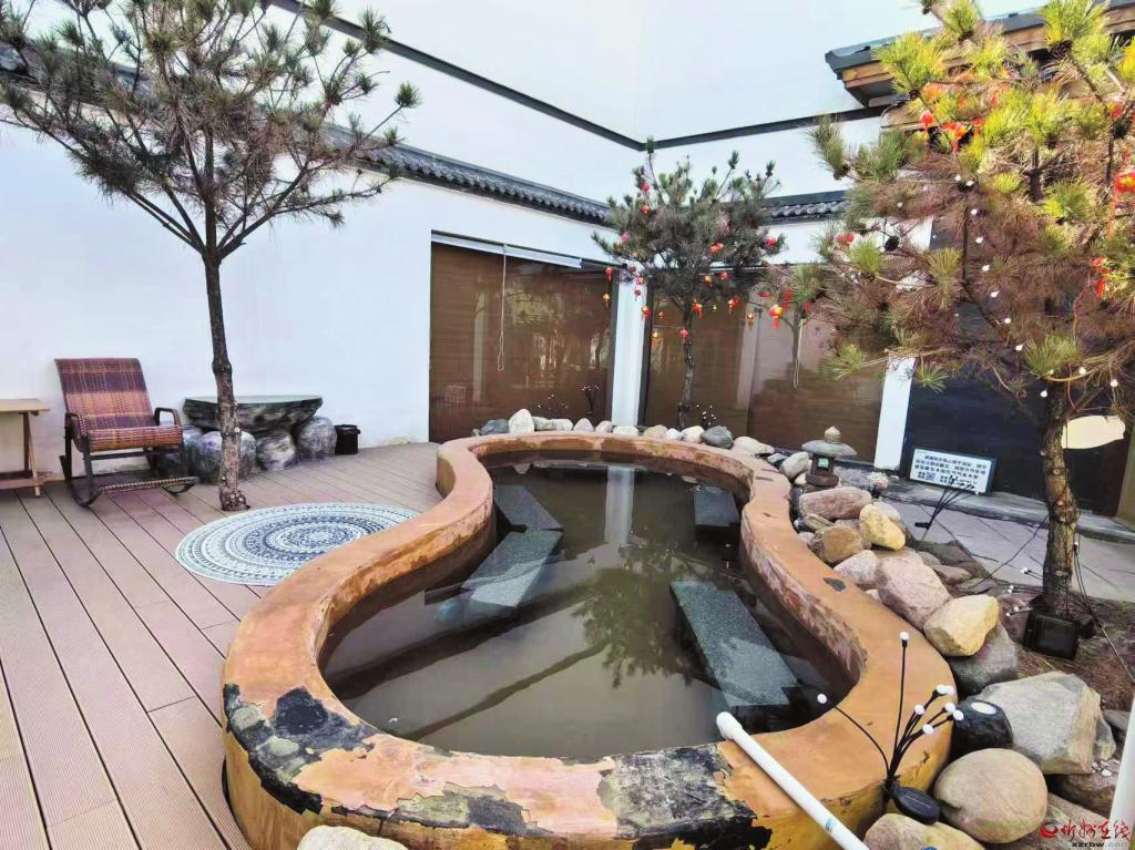這家“升級(jí)版”的集餐飲、茶飲、溫泉康養(yǎng)、旅游度假于一體大型民宿占地近三畝,設(shè)計(jì)、建筑別具匠心。在有限的空間內(nèi),11個(gè)獨(dú)立的院落沒(méi)有“平鋪直敘”,通過(guò)朝向和方位的搭配互補(bǔ),造成了曲徑通幽的效果。連接11個(gè)小院的路面遍布草坪,行人落腳處是一個(gè)個(gè)星羅棋布的舊磨盤(pán)。這一農(nóng)耕文明元素的巧妙點(diǎn)綴只是一個(gè)細(xì)節(jié),卻足以看出經(jīng)營(yíng)者的良苦用心。11個(gè)院落就是11個(gè)獨(dú)立的溫泉民宿,院落、房間大小各異,內(nèi)部格局、設(shè)施布置也各不相同,一個(gè)共同的特點(diǎn)是充分考慮到了私密性。院內(nèi)、房間皆有造型各異的溫泉泡池,加水、放水皆由前臺(tái)智能調(diào)控。有的院落建起燒烤臺(tái),統(tǒng)一提供木炭和燒烤用具。實(shí)行“管家式”一對(duì)一服務(wù),精美茶點(diǎn)敞開(kāi)供應(yīng)。當(dāng)街的餐飲、茶飲店起了個(gè)別致而有寓意的名字——“蒙太奇”,字面是電影剪輯術(shù)語(yǔ),暗含的意思是:歡迎內(nèi)蒙古、太原的游客來(lái)奇村……