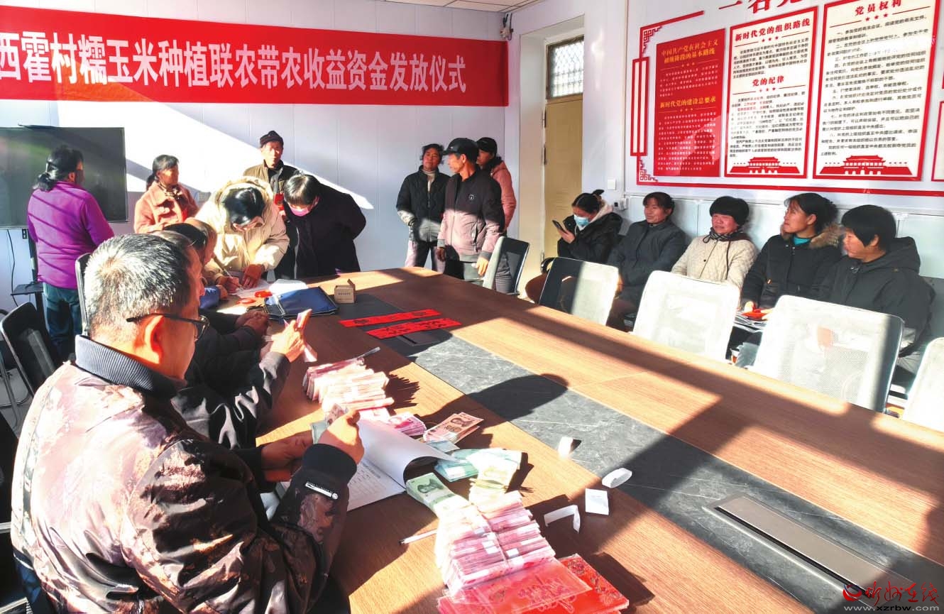 西霍村糯玉米種植聯(lián)農帶農收益資金發(fā)放儀式現(xiàn)場。