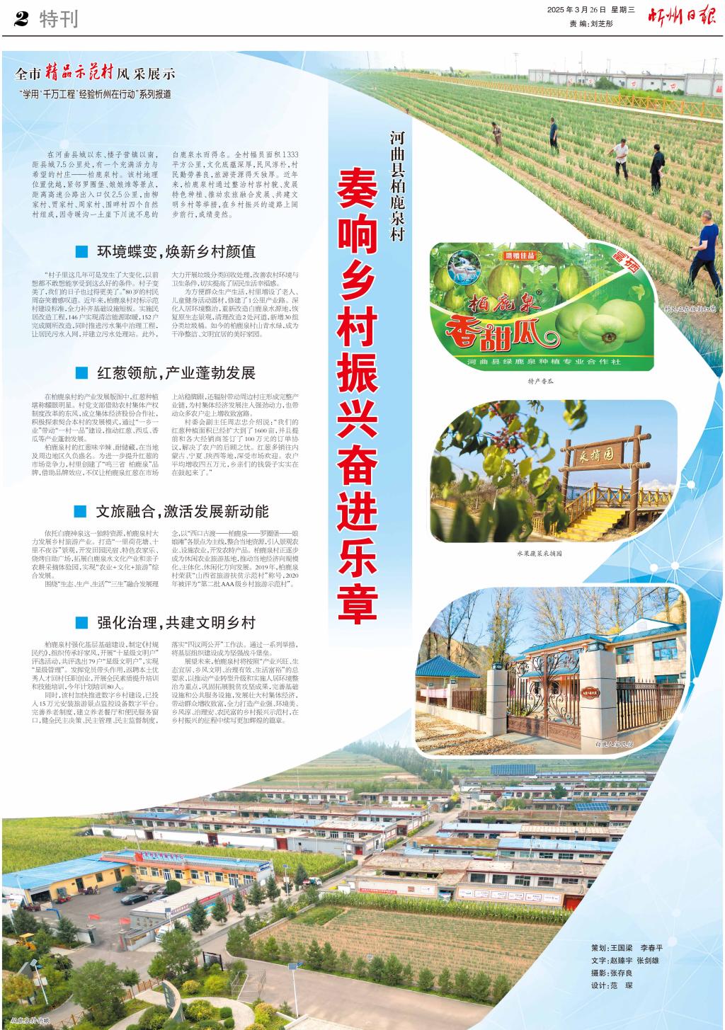 圍繞“生態(tài)、生產(chǎn)、生活”“三生”融合發(fā)展理念,以“西口古渡——柏鹿泉——羅圈堡——娘娘灘”各景點(diǎn)為主線,整合當(dāng)?shù)刭Y源,引入景觀農(nóng)業(yè)、設(shè)施農(nóng)業(yè),開(kāi)發(fā)農(nóng)特產(chǎn)品。柏鹿泉村正逐步成為休閑農(nóng)業(yè)旅游基地,推動(dòng)當(dāng)?shù)亟?jīng)濟(jì)向規(guī)?;?、主體化、休閑化方向發(fā)展。2019年,柏鹿泉村榮獲“山西省旅游扶貧示范村”稱號(hào),2020年被評(píng)為“第二批AAA級(jí)鄉(xiāng)村旅游示范村”。