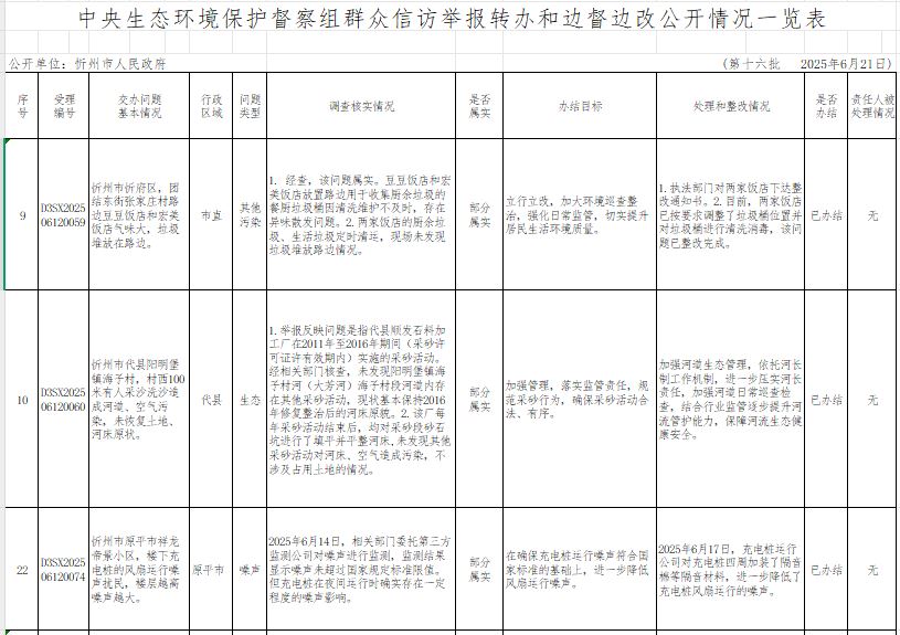 中央生態(tài)環(huán)境保護(hù)督察組群眾信訪舉報轉(zhuǎn)辦和邊督邊改公開情況一覽表(第十六批)
