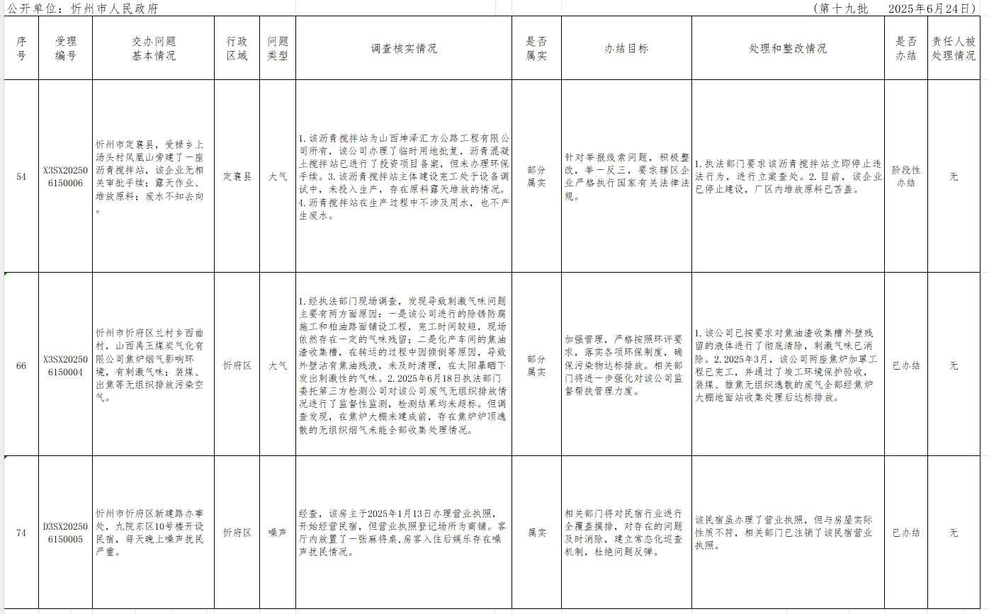 中央生態(tài)環(huán)境保護督察組群眾信訪舉報轉(zhuǎn)辦和邊督邊改公開情況一覽表(第十九批)