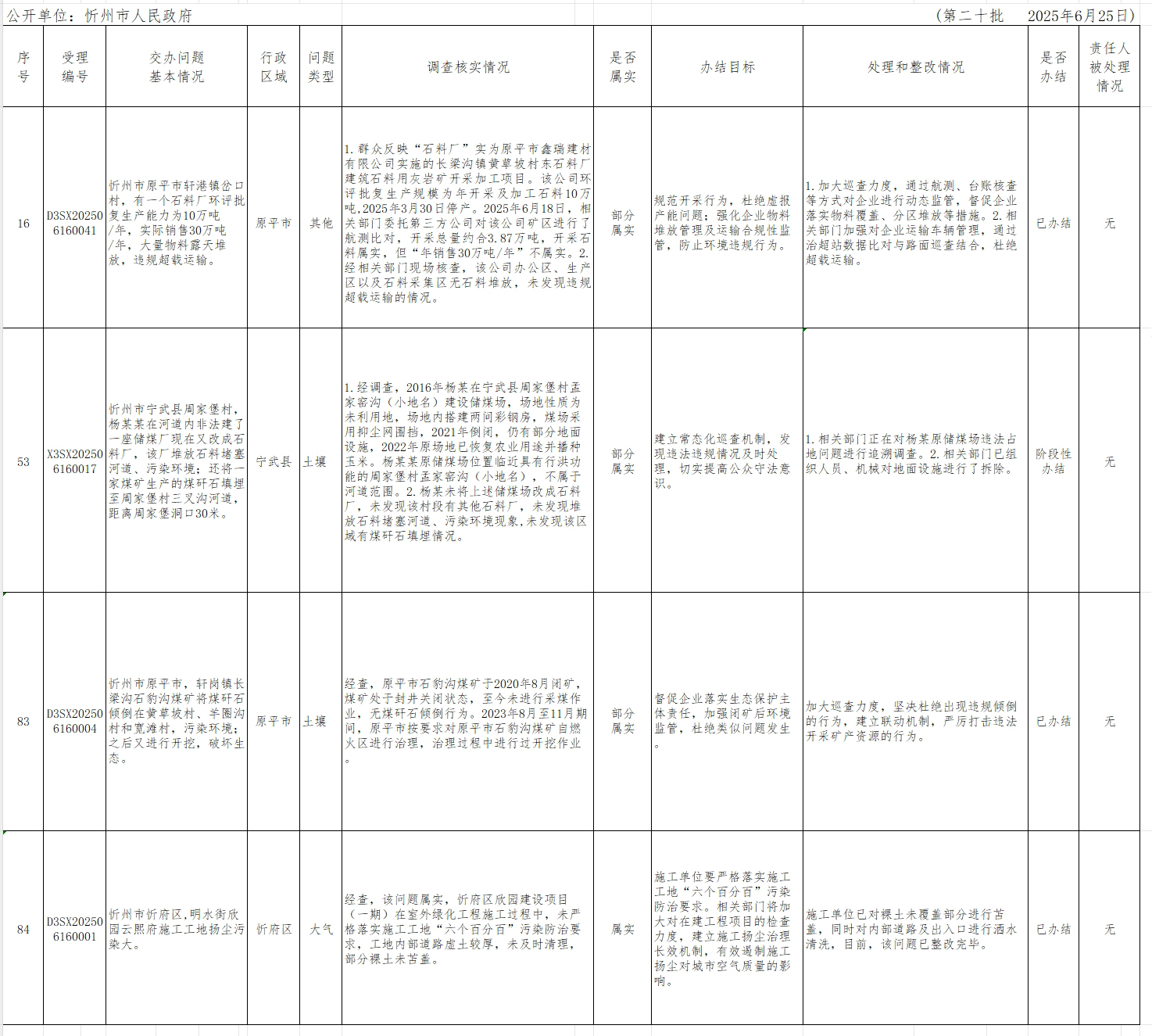 中央生態(tài)環(huán)境保護督察組群眾信訪舉報轉(zhuǎn)辦和邊督邊改公開情況一覽表(第二十批)