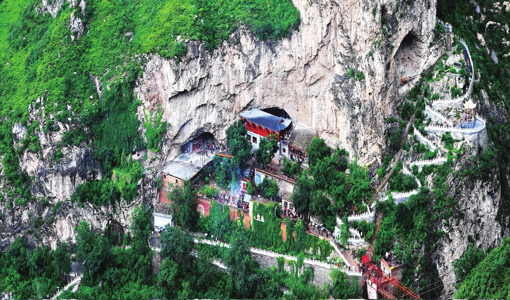 明代《忻州志》記載:“仙人洞,在福田寺左,相傳通平山縣,產(chǎn)瑪瑙。”這段記載揭示了另一個(gè)秘密——洞穴可能通往河北平山縣。1992年開(kāi)發(fā)時(shí)探明深度已達(dá)2000余米,但實(shí)際長(zhǎng)度仍是未解之謎。洞內(nèi)恒溫在8-11℃之間,形成“盛夏涼風(fēng)習(xí)習(xí),寒冬溫暖如春”的獨(dú)特微氣候。當(dāng)游客沿著依巖而建的“天梯”或乘坐索道抵達(dá)洞口時(shí),便踏入了一個(gè)四季恒常的時(shí)空膠囊。