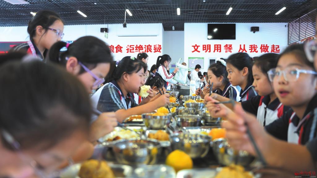 走進(jìn)長(zhǎng)城小學(xué),1535.25平方米的校內(nèi)餐廳里,900余名師生在老師引導(dǎo)下有序取餐、就餐,餐盤(pán)里葷素搭配的飯菜色香味俱全,孩子們的臉上滿是笑意?!耙郧鞍謰尮ぷ髅?,我每天得坐校車(chē)來(lái)回跑,現(xiàn)在有了午托太幸福了!午餐每天不重樣,有肉有湯,比媽媽做得還香!”六年級(jí)學(xué)生李宸慶捧著飯菜笑著說(shuō)。