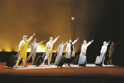 劇中講述了疫情突襲之時,全國各地的醫(yī)護(hù)工作者從四面八方逆行而往,緊急馳援武漢的感人故事。整部劇以情動人,京劇與現(xiàn)代舞蹈相融合的“載歌載舞”,塑造出“白衣戰(zhàn)士”勇敢堅毅的形象。