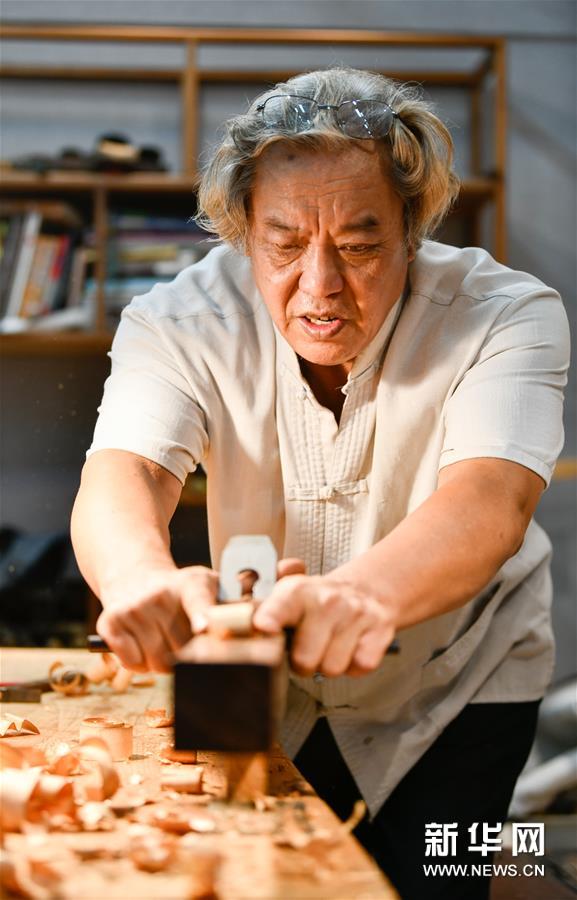 8月25日,在天津職業(yè)大學辛全生大師木藝工作室,辛全生在用刨刀刮料。今年62歲的辛全生是天津市南開區(qū)傳統(tǒng)木工榫卯技藝的非遺代表性項目傳承人。2019年9月,天津職業(yè)大學為發(fā)展并傳承木工技藝,邀請辛全生作為老師給學生們授課,負責教授學生們榫卯結構知識和木藝家具制作等實用技巧,并于2019年底在校內(nèi)建立辛全生大師木藝工作室。 辛全生出生于匠人家庭,他聽從父親的建議從16歲開始學習木工。40余年的木工生涯,辛全生經(jīng)歷過木工行業(yè)曾經(jīng)的紅火和后來的逐漸衰落,也曾在最艱難的時候做過別的營生。但無論如何,辛全生始終忘不了自己的木工身份。“老祖宗留下來的東西不能丟了,要傳承下去,否則將來的后代誰都不知道木工榫卯技術的存在了。”辛全生說。 近年來,有近百名不同職業(yè)、不同年齡的人慕名前來拜辛全生為師,學習傳統(tǒng)木工榫卯技藝。辛全生說,我會讓徒弟們學好木工榫卯技藝,讓中國的傳統(tǒng)手藝發(fā)揚光大。新華社發(fā)(孫凡越 攝)