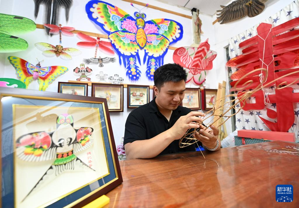 出身風(fēng)箏世家的魏博文大學(xué)畢業(yè)后,回到家鄉(xiāng)跟隨父親魏國(guó)秋“入行”做風(fēng)箏。他從自己有所基礎(chǔ)的繪畫著手,發(fā)揮年輕人的創(chuàng)新優(yōu)勢(shì),在風(fēng)箏設(shè)計(jì)上屢屢出新,不僅與一些游戲公司合作推出風(fēng)箏聯(lián)名款,還推動(dòng)風(fēng)箏制作技藝的改進(jìn)創(chuàng)新,設(shè)計(jì)了適合在室內(nèi)放飛的迷你風(fēng)箏。