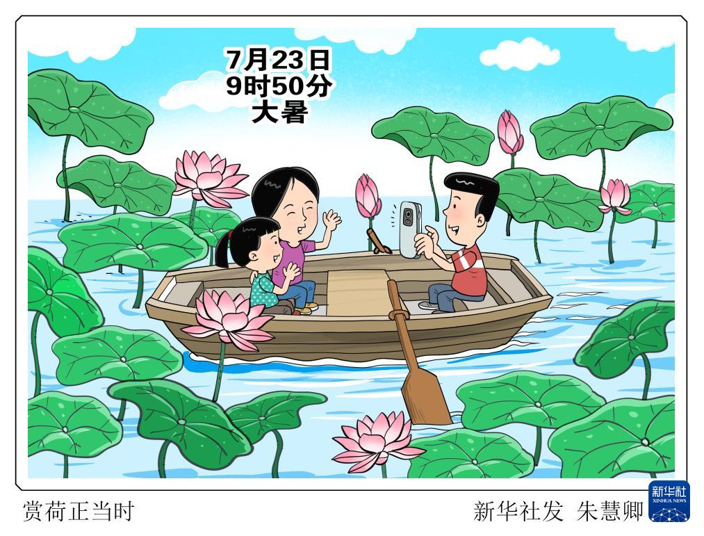 (漫畫)賞荷正當(dāng)時(shí) 新華社發(fā) 朱慧卿 作