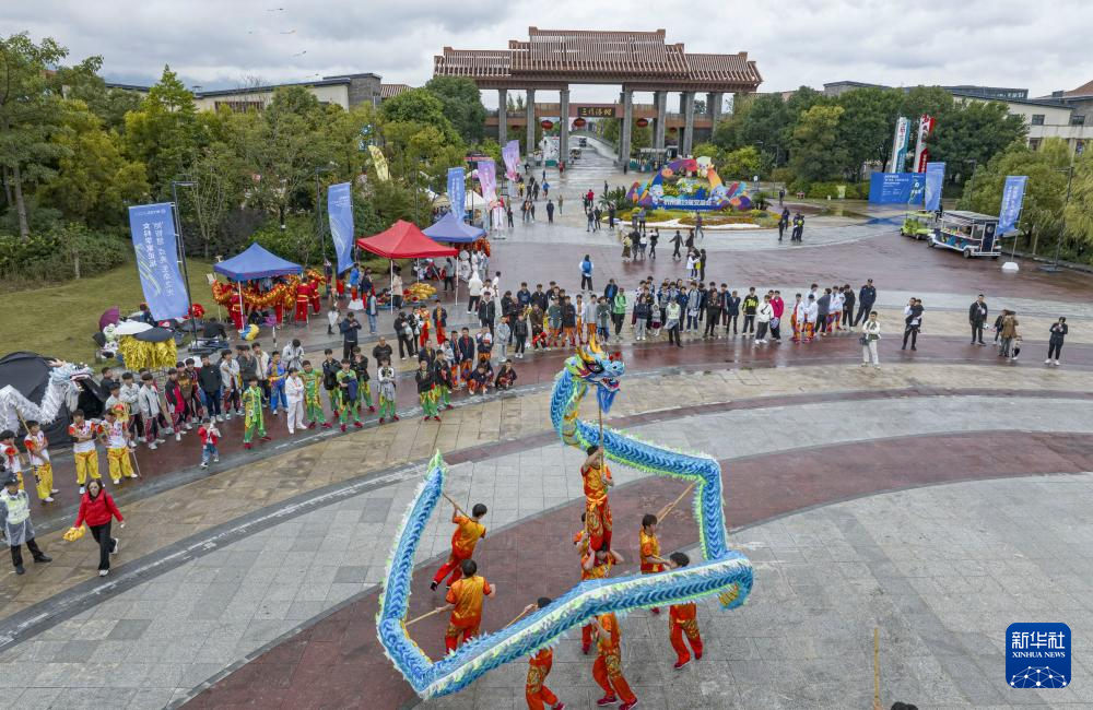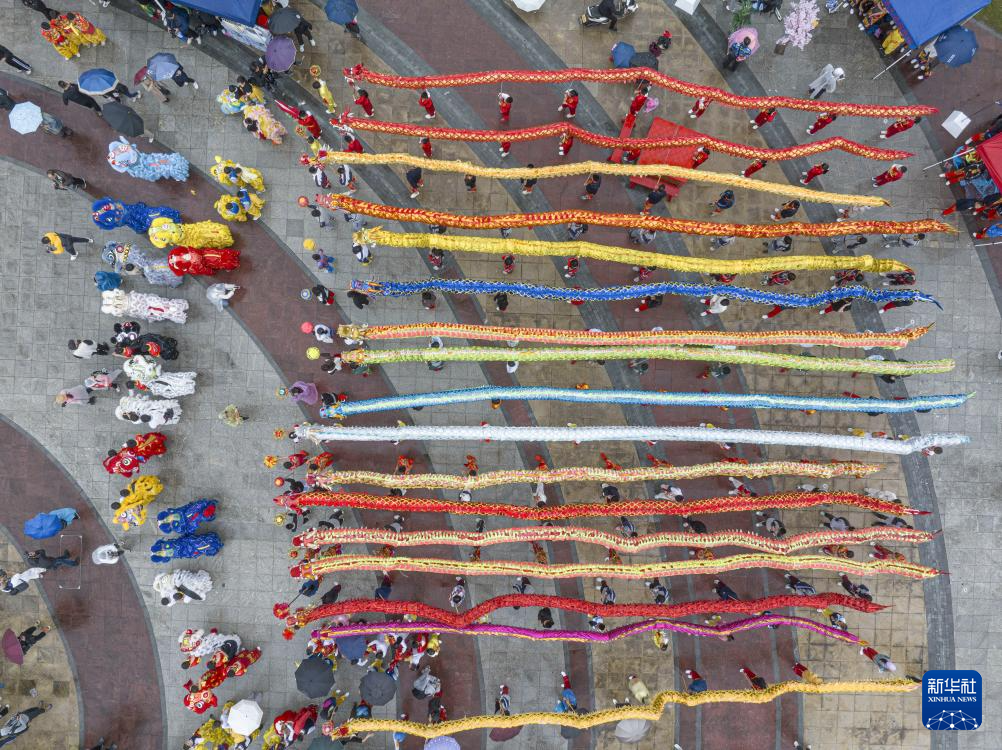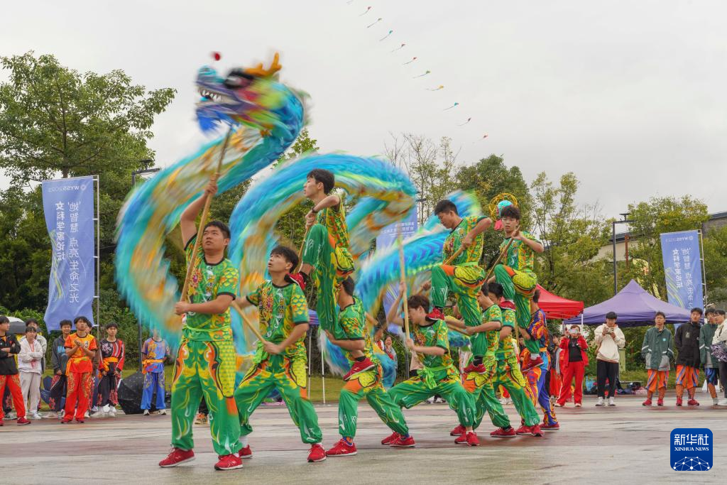 當(dāng)日,溫州市第八屆全民運(yùn)動(dòng)大會(huì)2023年舞龍舞獅精英賽在溫州市三垟濕地公園北廣場(chǎng)舉行。本次比賽分舞龍自選、舞獅自選、創(chuàng)意龍獅、彩帶龍等項(xiàng)目,設(shè)兒童組、青少年組和成年組三個(gè)組別,吸引來(lái)自溫州各地的舞龍舞獅隊(duì)參加。新華社發(fā)(蘇巧將攝)