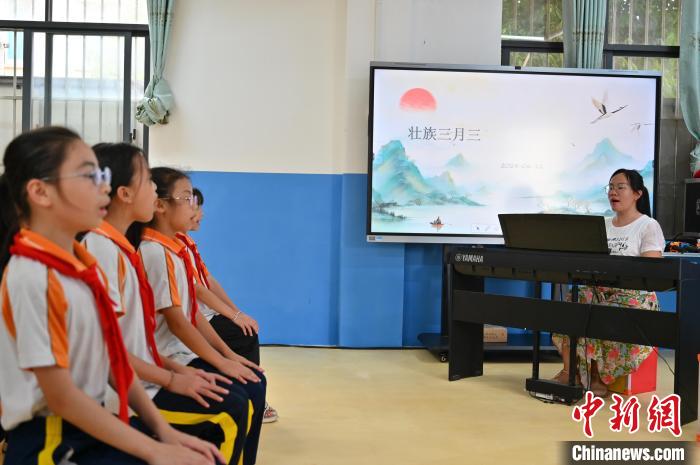 6月12日,音樂教師李麗帶領學生演唱壯族嘹歌。 俞靖 攝