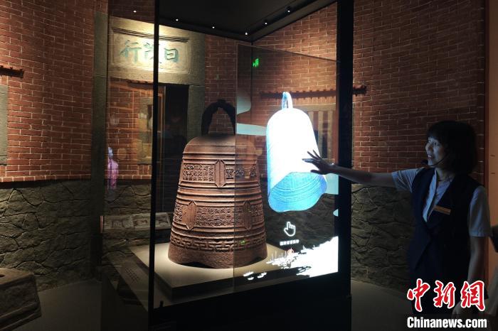 中國閩臺緣博物館里的眾多涉臺文物述說著兩岸間難以割舍的情感紐帶。圖為清道光十七年鹿港郊公置鐵鐘。 吳冠標(biāo) 攝