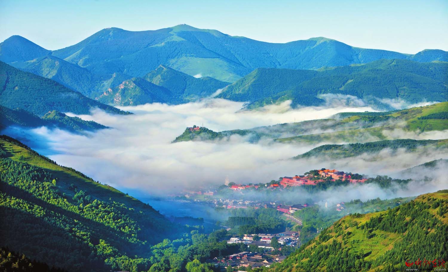 除了以上所說(shuō)的一些地理地貌外,五臺(tái)山清涼的氣候以及豐富的植被也吸引了眾多佛教徒,使五臺(tái)山成為清修的好地方。晉譯《華嚴(yán)經(jīng)·菩薩住處品》記載:“東北有菩薩住處,名清涼山?,F(xiàn)有菩薩文殊師利與一萬(wàn)菩薩常住說(shuō)法?!逼鋵?shí)這一說(shuō)法很模糊,佛教追求無(wú)欲無(wú)求,自然需要一個(gè)清心寡欲的環(huán)境,因此“清涼山”可能是一個(gè)虛指。但五臺(tái)山作為華北屋脊,最高海拔達(dá)3061米,比周圍的黃土高原、華北平原都要涼爽許多,長(zhǎng)途跋涉的僧人突然來(lái)到如此清涼的地方,很容易就把五臺(tái)山當(dāng)成一直向往的“清涼山”。于是,在五臺(tái)山正式成為文殊道場(chǎng)后,自然而然也擁有了一個(gè)別名——“清涼山”。