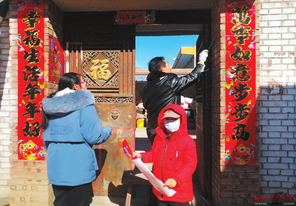 喜氣洋洋貼對(duì)聯(lián)。 宮清華攝