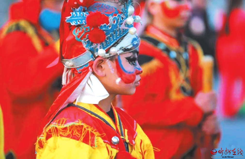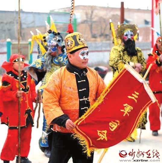 令人欣喜的是,今年的社火表演增加了很多新鮮血液,最小的表演者只有11歲。72歲的社火老藝人梁生偉是總教練,第十四代傳承人李軍平是演員兼教練。在他們帶領(lǐng)下,每一次演出從召集、化妝、著裝、配飾、道具,到列隊(duì)、祭旗、出征、行軍,以及演出中的傳丁、練兵、探馬、布陣、對壘、決戰(zhàn)、破陣等,每一個(gè)細(xì)節(jié)都有講究、說法和規(guī)矩。其行為規(guī)范貫穿著樸素的古代儒家哲學(xué)思想,其陣法擺出的是玄妙的古代軍事戰(zhàn)陣,如對打表演的是北宋楊繼業(yè)楊家軍的武術(shù)套路,鼓樂擊打出的是原始戰(zhàn)鼓石破天驚的鼓點(diǎn)風(fēng)格,給人以極大的歷史韻味和藝術(shù)享受。