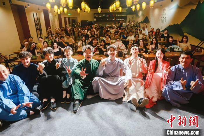 “之前只在線上聽過傳統(tǒng)相聲,來了才知道相聲還能這么玩,我錄制了視頻發(fā)在朋友圈,好幾個朋友都說要來打卡。”“Z世代”張倩是這家相聲館的“老粉”,每周從不缺席?!拔疫€‘安利’給了丈夫和孩子,我們經(jīng)常一家三口來聽相聲,孩子現(xiàn)在都能說兩句貫口了?!睆堎徽f。