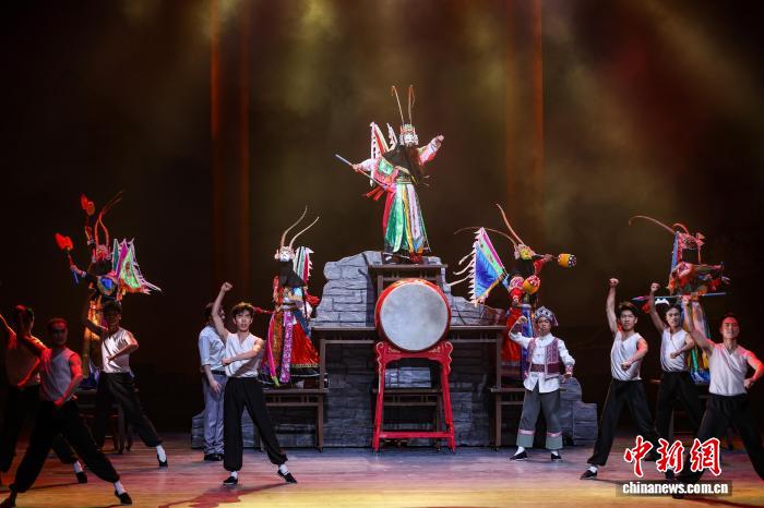 由貴州省民族歌舞團(tuán)演出的民族歌舞劇《山河同心》作為開幕式劇目首演。劇目以第一批國家級非物質(zhì)文化遺產(chǎn)名錄項目“安順地戲”為重要情感紐帶和文化符號,共分為《上梁》《拜月》《敬茶》《出征》四場。