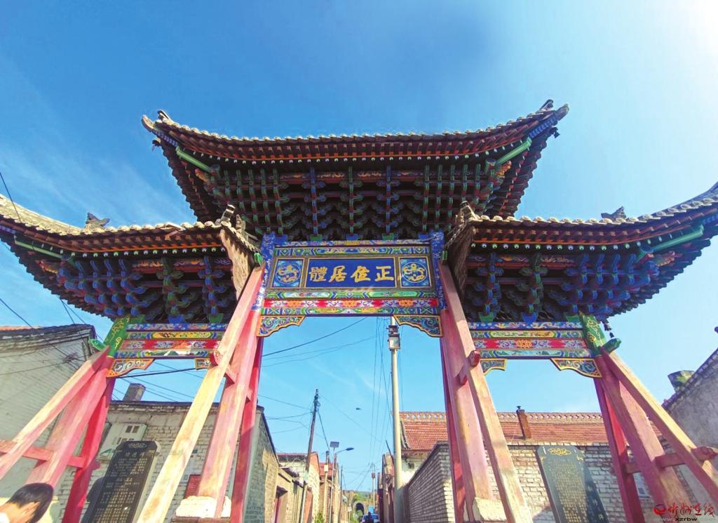 五寨縣三岔木牌坊坐落于三岔堡十字大街的北口,始建于明萬(wàn)歷九年(1581年)。木牌坊坐北朝南,座基為60厘米高的石砌臺(tái)基。牌坊呈三項(xiàng)疊襯“品”字形制,四楹三門(mén),坊高7.25米,通寬11.2米,其中門(mén)高3米,寬3.15米,車(chē)馬通行;兩邊門(mén)略低,高2.65米,寬2米,只呈門(mén)樣,不作通行。四楹都用雙木斜卡,并抱有雕獅的石鼓,以鐵條箍制,既固根基,又顯威嚴(yán)。欄坊下裝有木刻匾額,正面題“正位居體”,背面題“大觀在上”。頂端起脊彩飛,雙層檐頭,青瓦蓋頂;下檐五步彩飛檐頭拱,結(jié)構(gòu)奇巧,造型美觀,檐頭四角掛有風(fēng)鈴,微風(fēng)輕拂,鈴聲悠揚(yáng),蔚為壯觀。三岔木牌坊是五寨縣境內(nèi)僅存的一座木結(jié)構(gòu)明代古建筑,具有較高的建筑文化水平和藝術(shù)鑒賞價(jià)值。2007年6月6日,忻州市人民政府公布其為市級(jí)文物保護(hù)單位。