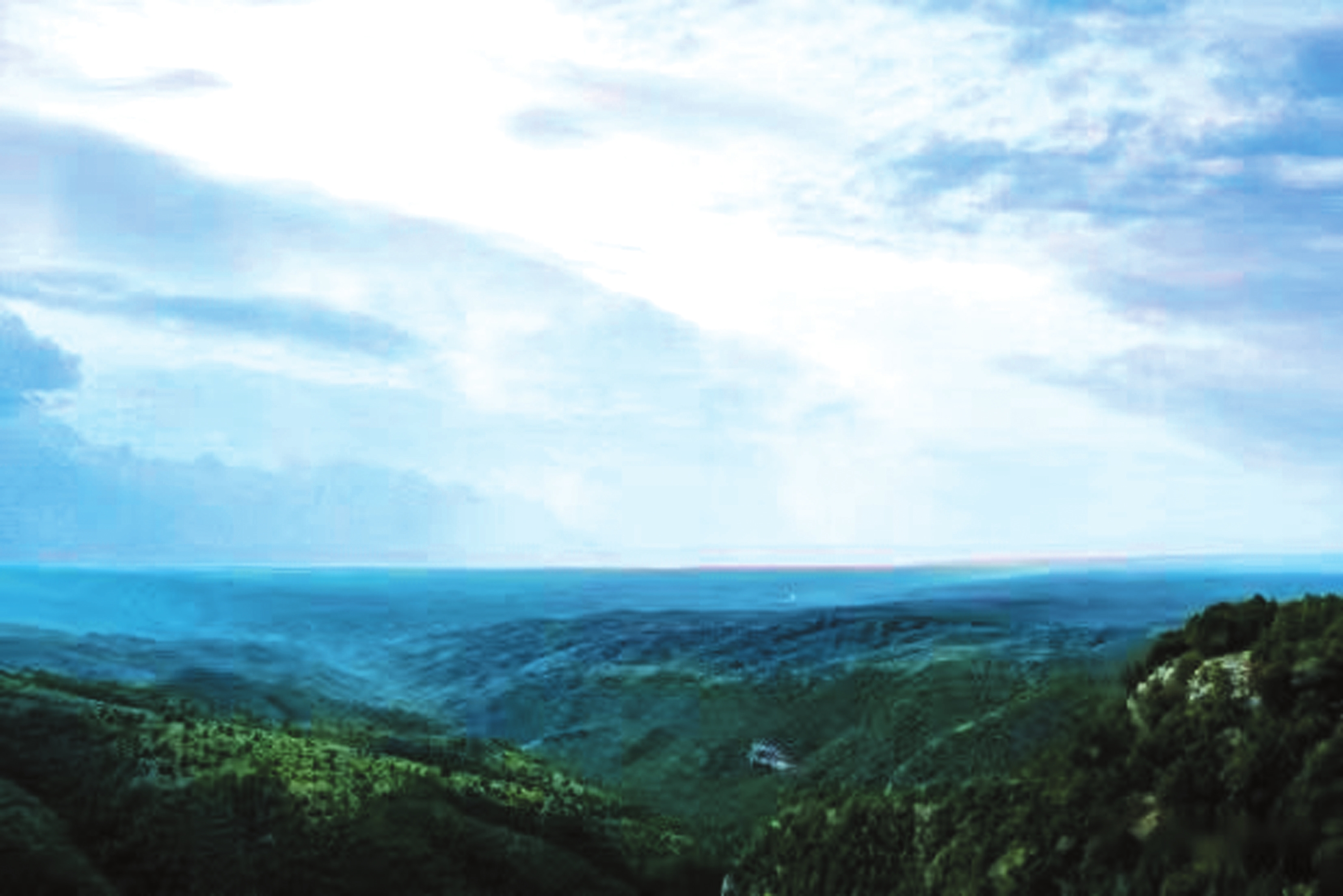 立于井油山巔,風(fēng)光盡收眼底。遠(yuǎn)山如黛,似畫師以淡墨隨性揮灑;云霧纏繞,像仙人隨手拋下的素紗。風(fēng)自山腳徐徐而來(lái),攜著青草的鮮嫩與松針的醇厚,穿入肺腑。每一次呼吸都如飲甘露,令人心神一振,旅途的疲憊瞬間消散。八月的山澗,細(xì)流潺潺,其聲悅耳。日光透過(guò)枝葉縫隙,碎成點(diǎn)點(diǎn)金箔,在山坳間跳躍,為滿山濃綠注入了靈動(dòng)氣息。密林深處,時(shí)而傳來(lái)野雞、鷓鴣的清啼,劃破山間靜謐;時(shí)而有野兔、松鼠竄動(dòng)的窸窣聲,讓整座山都透著勃勃生機(jī)。