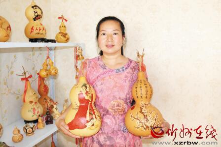 今年43歲的馬來(lái)云算是半道踏上葫蘆烙畫(huà)這條路的。2017年,一場(chǎng)交通意外事故導(dǎo)致她膝關(guān)節(jié)半月板損傷,再不能從事過(guò)多的體力勞動(dòng),這著實(shí)給本就患有語(yǔ)言障礙的她沉重一擊。既要為孩子籌措學(xué)費(fèi),又要維持家庭日常開(kāi)支,獨(dú)自承擔(dān)家庭重?fù)?dān)卻苦于沒(méi)有合適就業(yè)崗位的馬來(lái)云日子過(guò)得很是艱難。在好友解和平的主動(dòng)聯(lián)系下,馬來(lái)云有幸得到了去市里為殘障人士舉辦的葫蘆烙畫(huà)培訓(xùn)班學(xué)習(xí)的機(jī)會(huì)。自幼酷愛(ài)畫(huà)畫(huà)的她緊緊抓住這次機(jī)會(huì),在為期一個(gè)月的時(shí)間里認(rèn)真研學(xué)烙畫(huà)技能。由于悟性高又肯下苦功,馬來(lái)云第一次創(chuàng)作的作品便受到了老師的嘖嘖稱(chēng)贊。此后3年,她一邊跟著老師深入學(xué)習(xí)葫蘆烙畫(huà)技藝,一邊打些烙畫(huà)零工補(bǔ)貼家用。