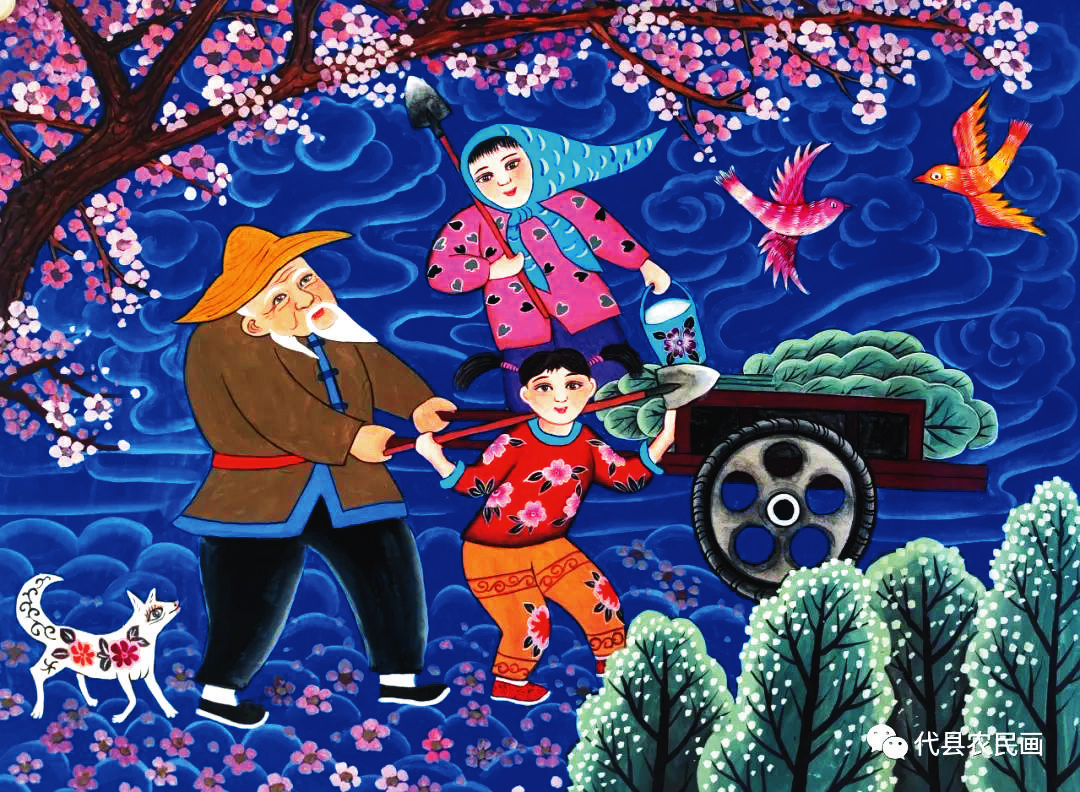 中國歷史文化名城代縣,文化底蘊深厚,民俗傳統(tǒng)技藝精巧別致,1988年和2008年先后被文化部授予“中國民間繪畫畫鄉(xiāng)”“中國民間文化藝術(shù)之鄉(xiāng)”。該縣的農(nóng)民畫早在上世紀(jì)80年代初就在全國產(chǎn)生過較大影響,之后經(jīng)歷了一段低迷期。近年來在代縣農(nóng)民畫促進(jìn)會的推動之下,農(nóng)民畫又重新煥發(fā)出耀眼的光彩。先后涌現(xiàn)出多位畫家,其中尤以丁全愛、戴翠平、祁磊、賈永花、郎冬梅等18位女畫家組陣的雁門巾幗,在多年鉆研繪畫技巧的基礎(chǔ)上,創(chuàng)作出一幅幅特色鮮明、獨具匠心的畫作,成為閃耀三晉大地的矩陣,為傳承、弘揚雁門文化做出了新貢獻(xiàn)。