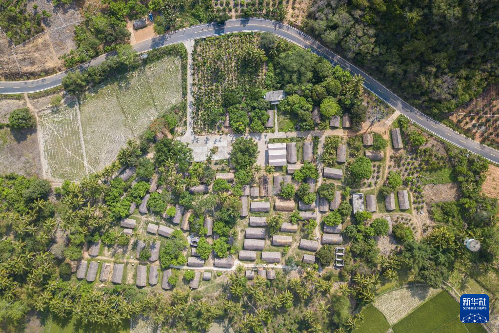 4月28日在海南省東方市白查村拍攝的黎族船型屋(無(wú)人機(jī)照片)。