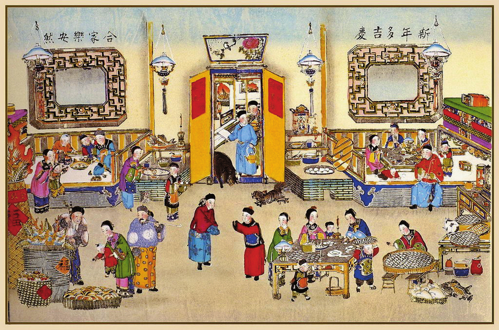 跟春節(jié)一墻之隔的是除夕。除夕對(duì)年長(zhǎng)的人們來(lái)說(shuō),最惦念的便是那頓美味的年夜飯。作為年前最豐盛的一頓大餐,年夜飯講究既要吃飽,更要吃剩,因?yàn)椤笆!奔础坝唷?,吃剩才叫“有余”,寓意從舊年到新年年年有余。年夜飯的妙味,還在于家人的團(tuán)圓。年夜飯后,開(kāi)始守歲,即熬年夜。長(zhǎng)幼聚歡,直到午夜之后方睡,或待天明。正月初一凌晨,雷鳴般的鞭炮驟然炸響,新年的序幕在一片爆竹聲中開(kāi)啟了。鞭炮猶如舞臺(tái)上的演員,以中國(guó)傳統(tǒng)說(shuō)唱的方式,開(kāi)始了一場(chǎng)與歡樂(lè)有關(guān)的大型實(shí)景演出,將人們一同帶入幸福深處。