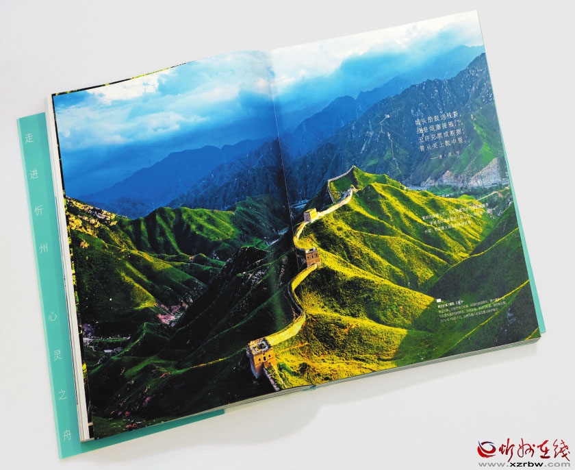 在視覺呈現(xiàn)上,為了追求最佳的閱讀體驗,書中每一篇文章都精雕細琢,每一張攝影作品選用也極其嚴苛。要求文字內容與圖片內容都要一一對應,可以說每一個對開頁面,都是一次全新的設計。就這樣,把忻州的美好風光同當?shù)氐娜宋臍v史有機地融合在一起,給人以賞心悅目的享受和豐富知識的熏陶,讓人既覺得身臨其境,又心馳神往。