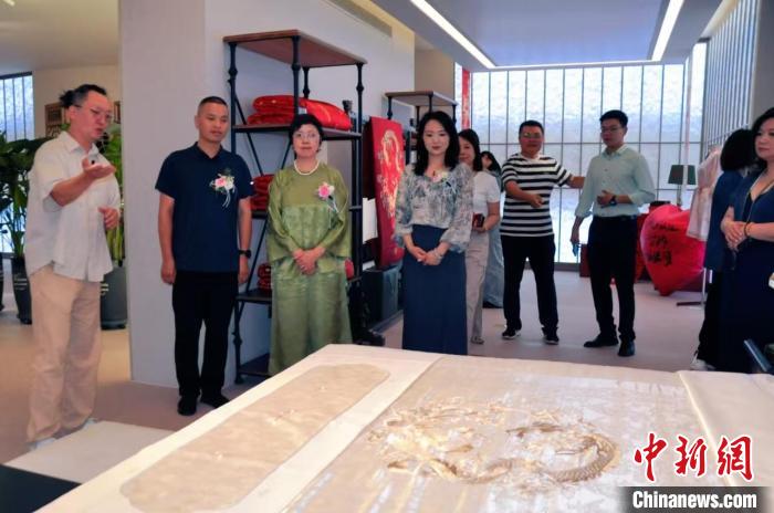 潞安府·第二屆龍鳳文化藝術(shù)節(jié)(金玉良緣)正在山西晉城高平舉辦。 高平市融媒體中心供圖 據(jù)介紹,本屆藝術(shù)節(jié)亮點紛呈,以“開門見喜”“龍鳳呈祥”等為主題的婚禮文創(chuàng)展,巧妙融合傳統(tǒng)與現(xiàn)代,特別是將龍鳳元素與年輕人喜愛的白色主題相結(jié)合,推出新中式婚被,成為一大創(chuàng)新。 同時,婚禮文創(chuàng)展還設(shè)置“婚書”“百圖”拓印等互動體驗,讓民眾在參與中感受傳統(tǒng)文化的魅力。