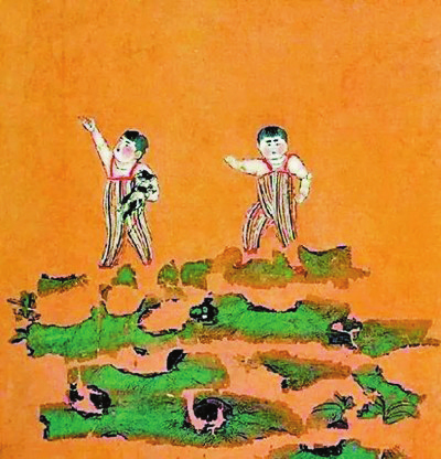 雙童圖 (唐) 新疆吐魯番市阿斯塔那187號墓出土
