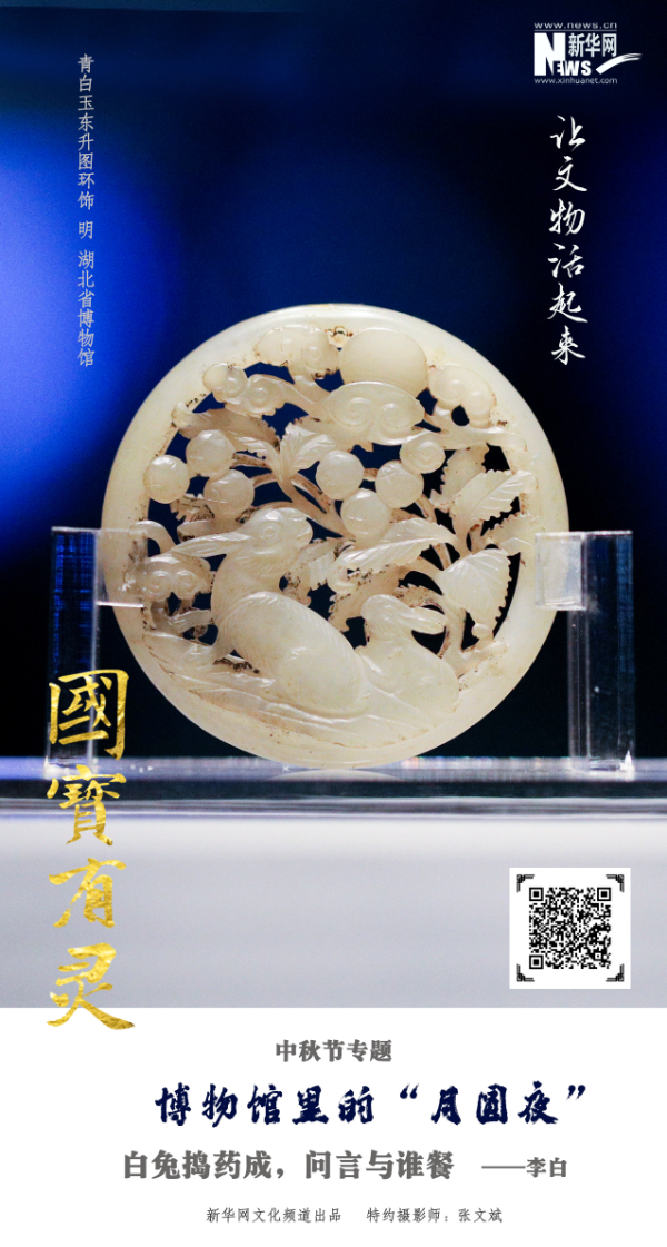 編者按:又是一年中秋節(jié)到,值此佳節(jié)到來之際,新華網(wǎng)文化頻道“國(guó)寶有靈”文化IP特推出中秋節(jié)專題《博物館里的“月圓夜”》,精選了六件帶有月亮、玉兔等元素的博物館中的文物,并配有與月有關(guān)的詩句,制作成了海報(bào),希望借由這些富有古老文化內(nèi)涵的國(guó)寶珍品,讓您感受到傳統(tǒng)中秋文化的魅力,為您的節(jié)日增添更多意趣,從中體悟到中華優(yōu)秀傳統(tǒng)文化的精髓所在,有所增益,有所感悟。新華網(wǎng)文化頻道在此祝您闔家團(tuán)圓,幸福安康!