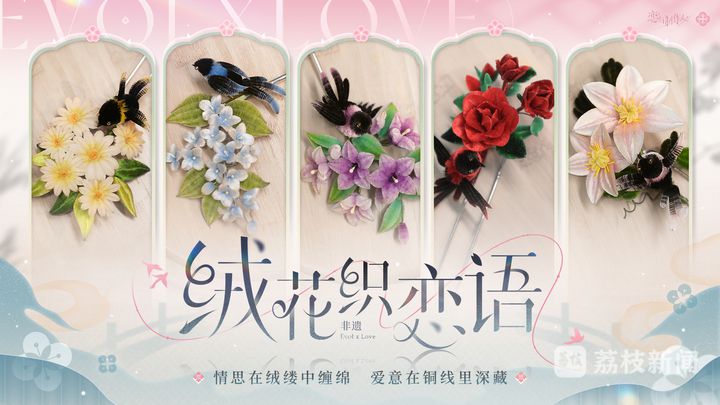 上個世紀90年代末,純手工制作的絨花漸漸被工業(yè)流水線生產(chǎn)的頭花、胸花所取代,傳統(tǒng)工藝傳承受到?jīng)_擊。2006年,在“南京最后的絨花匠人”趙樹憲的堅持與努力下,絨花煥發(fā)新生,在熱愛傳統(tǒng)文化的年輕人當中人氣逐漸高漲。