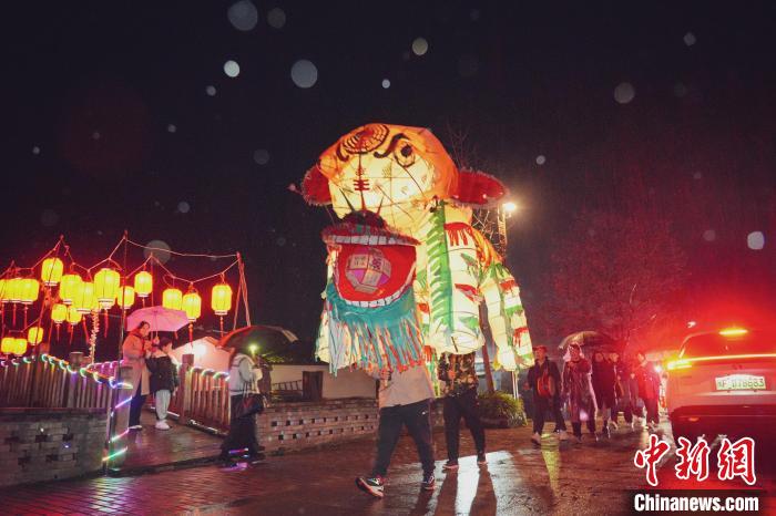 夜幕降臨,華燈初上,竹貫村的大街小巷都洋溢著濃郁的節(jié)日氛圍。雖然天空飄著小雨,但游客們熱情不減,只見(jiàn)五彩斑斕的花燈在夜幕下熠熠生輝,為新春佳節(jié)增添了更多的歡樂(lè)與奇幻。值得一提的是,部分花燈的內(nèi)部設(shè)計(jì)尤為復(fù)雜,游客輕輕一拉花燈下的繩子,上面的紙人就仿佛被賦予了生命,手舞足蹈,生動(dòng)形象。