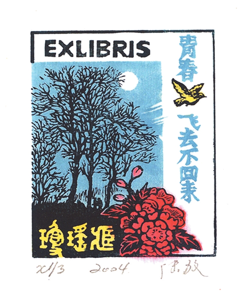 創(chuàng)作一枚專屬于自己的水印木刻藏書票,是一場(chǎng)頗富詩意與匠心的藝術(shù)之旅。從構(gòu)思到設(shè)計(jì),從刻板到印刷,充滿著創(chuàng)作者對(duì)文化的敬畏、對(duì)書籍的熱愛以及對(duì)美好的期許。水印木刻藏書票的制作并不簡(jiǎn)單,會(huì)經(jīng)歷各種各樣的意外——紙張的濕度、顏色的厚薄、錯(cuò)版等都會(huì)影響畫面效果。但這何嘗不是一次深度的文化體驗(yàn)?在設(shè)計(jì)中認(rèn)知自我,與書籍神交;在勞作中體悟精益求精的工匠精神;在印制中領(lǐng)略千變?nèi)f化的色彩韻味。當(dāng)用刻刀在木板上刻下自己的名字,馬蓮在紙的背面輕輕摩擦,墨色慢慢洇化,心靈在方寸之間得到浸潤(rùn)。如果把創(chuàng)作過程寫成一本書,水印木刻帶來的奇妙感受將是書中最精彩的情節(jié)。